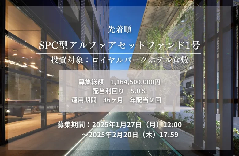 不動産クラウドファンディング『ジョイントアルファ[Jointo α]』にて、初のSPC型ファンドを募集を2025年1月27日(月)12:00より募集を開始します。