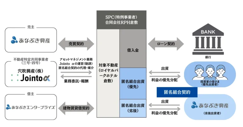 このファンドは、不動産特定共同事業3号・4号事業を活用した倒産隔離スキームを採用しており、Jointo αとしては初の取り組みとなります。