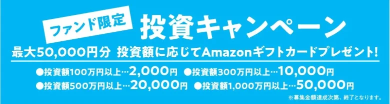 ①投資額に応じて、最大50,000円分のAmazonギフトカードをプレゼント
