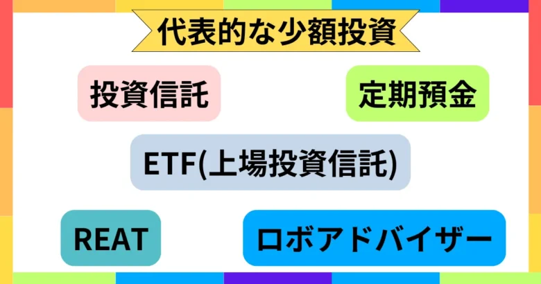 少額投資には、リスクの低いものから高いものまで、さまざまな選択肢があります。