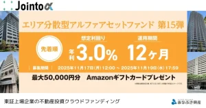今後もJointo αでは、安定した運用と分かりやすい情報開示を重視し、不動産クラウドファンディングの提供に取り組んでまいります。今後ともJointo αをよろしくお願いいたします。